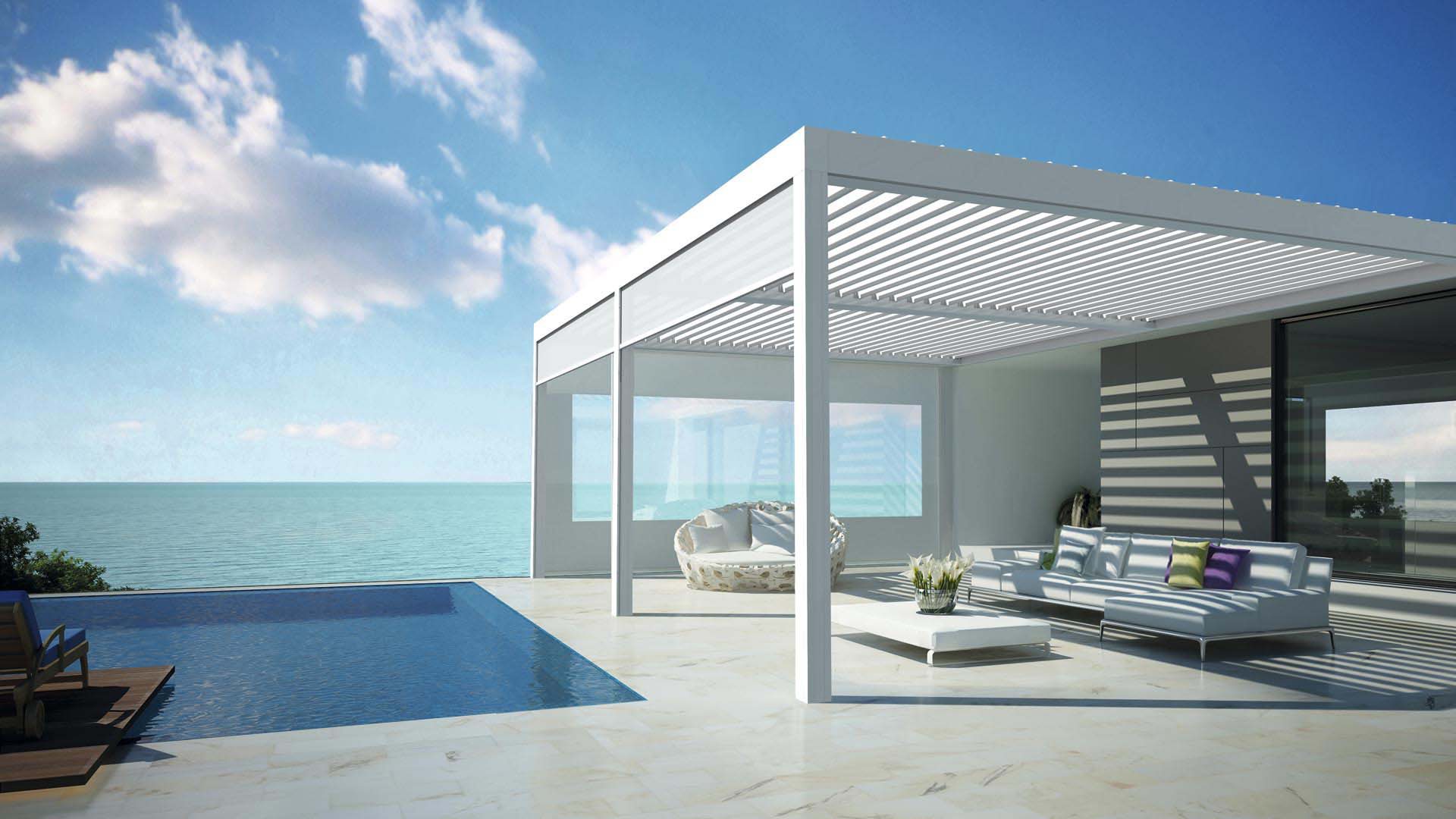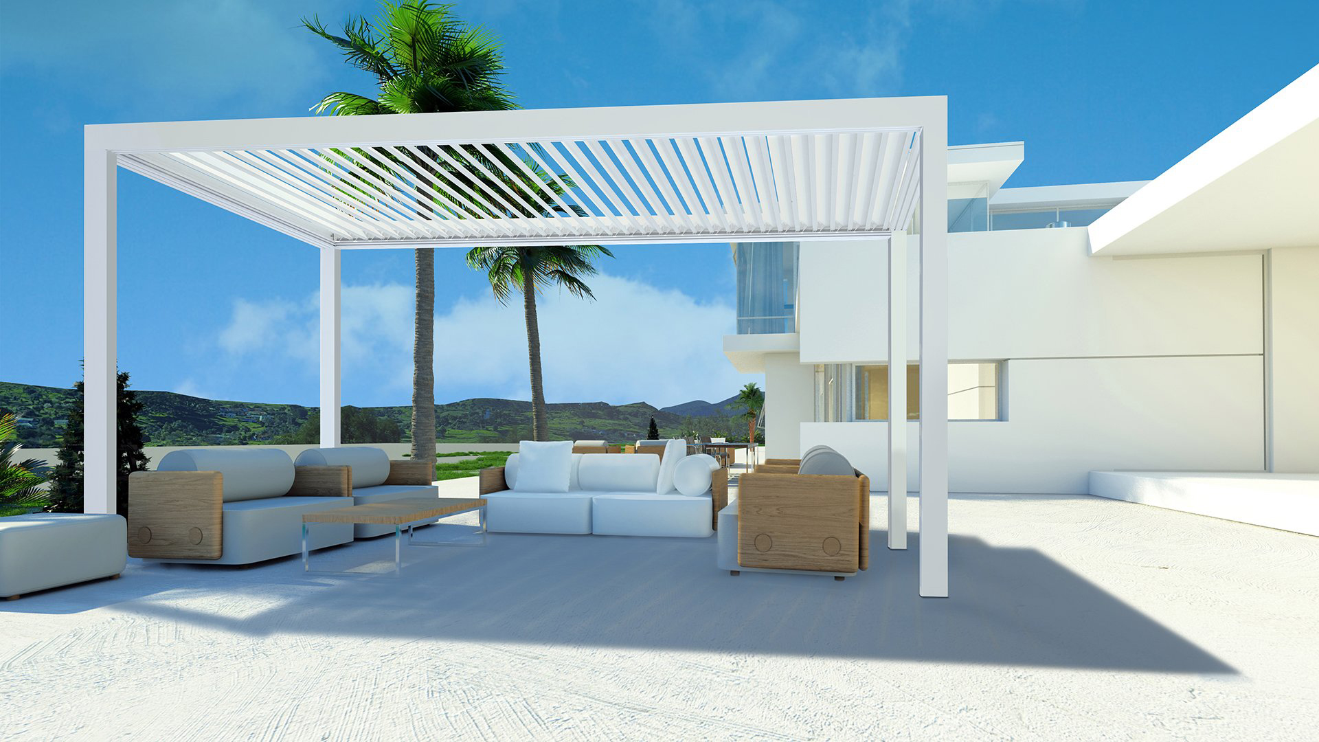 Nuestras pérgolas están construidas con columnas y postes de aluminio que soportan una serie de vigas o celosías que sirven a su ves como una cubierta para un patio o un paseo marítimo,